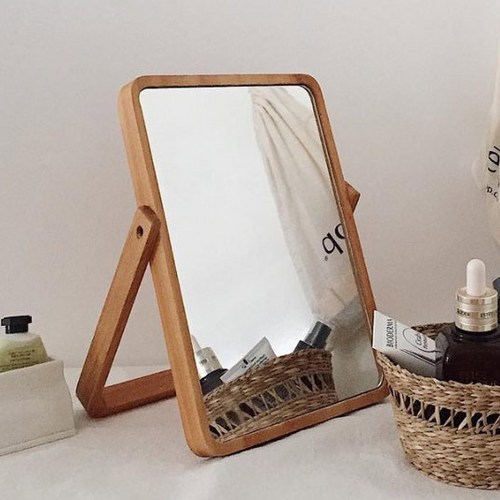 에이비엠코리아 우드 사각 탁상 거울 L, 브라운