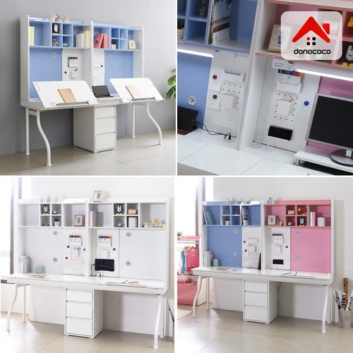 도노코코 도로시 2인용 각도조절 책상 책장세트 USB매립, 화이트