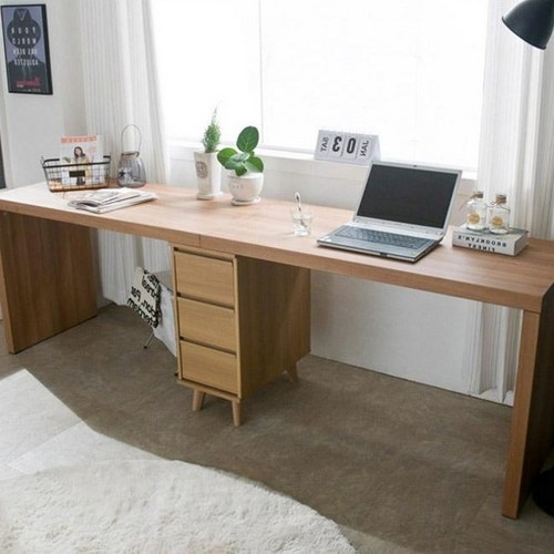 [키움가구] 50mm 상판 튼튼한 데스크 2000 책상 서랍장 포함 2인용 컴퓨터, 오크