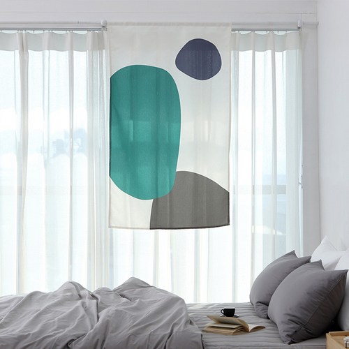 리앤룸 패브릭 포스터 겸용 카페 가리개 커튼, 블루