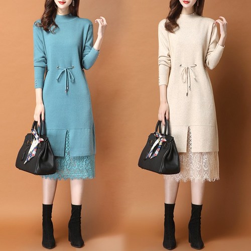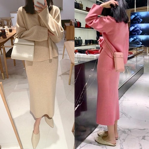 르엠마 분위기 루즈핏 니트 스웨터 스커트 니트원피스 겨울원피스 가을 원피스 세트(Set)