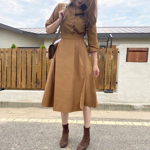 카렌 셔츠 롱 플레어 원피스 여성 가을 긴팔 롱원피스
