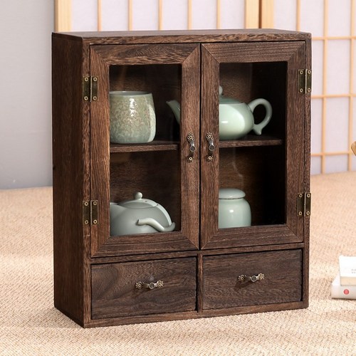 옛날찬장 원목 찻장 엔틱 미니 그릇장 3단 양개도어 컵 주전자 수납장 다기장, A