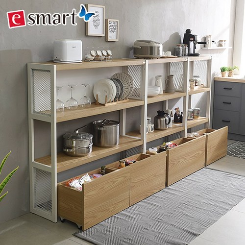 e스마트 철망 3단1200 주방수납장겸 그릇장, 화이트