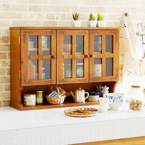 식탁위수납 미니 원목 그릇장 찻장 양념수납장, B타입(2문+대형+브라운컬러)