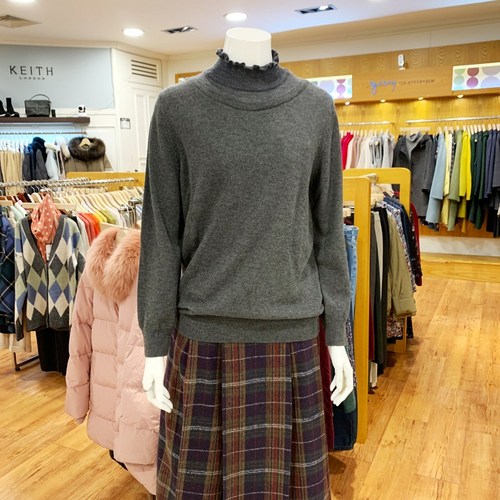 기비 울100% 프릴 하이넥 니트 티셔츠 레드 진그레이 WP842