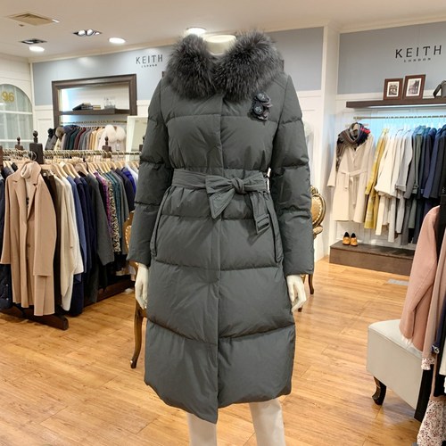 기비 여성용 폭스퍼 벨티드 구스 다운 롱 패딩 점퍼 WH8R2