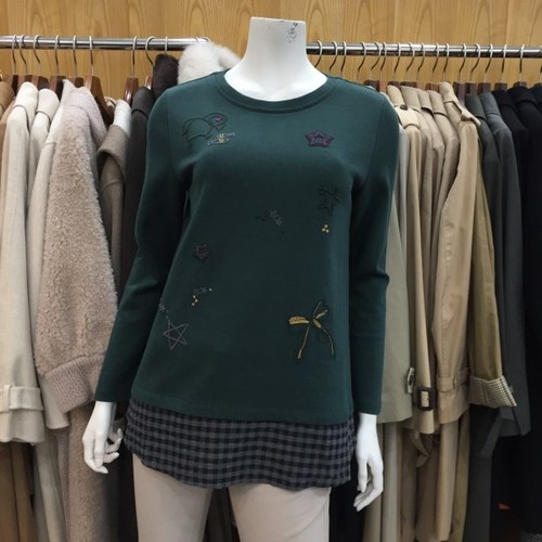기비 이월세일~! 프린트 패치 블라우스형 기모 저지 티셔츠 WT8W1 긴팔
