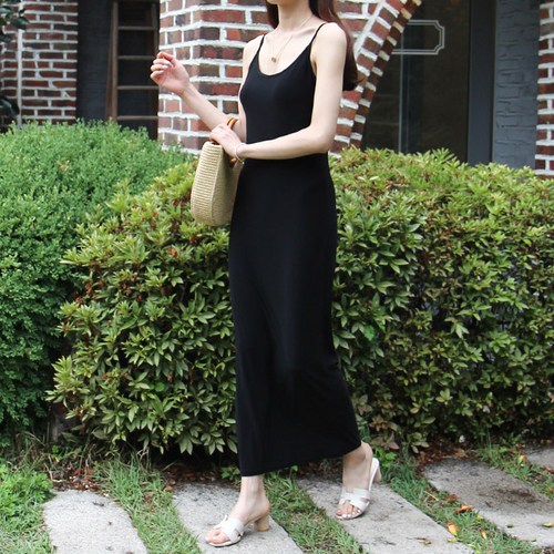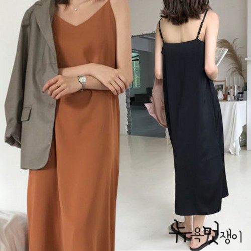 뉴욕멋쟁이 르잔 무지 끈나시 롱원피스 여름원피스 민소매 원피스 나시