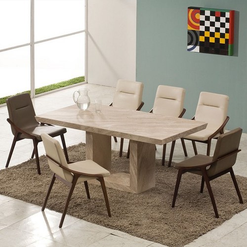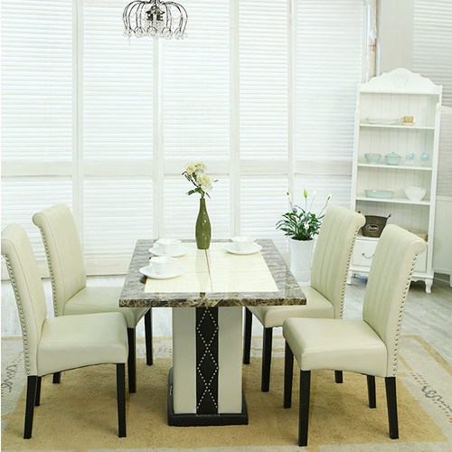 6인용 식탁 다이닝 티 테이블 카페 홈바 라운지 투톤 컬러 식탁 의자 세트, 화이트 화이트 가죽 대리석 테이블
