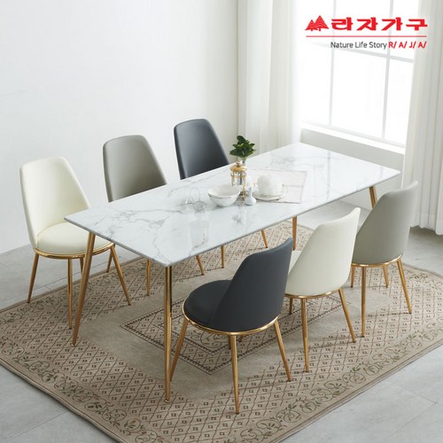 라자가구 위드 6인용 대리석 식탁세트 PU의자 포함 cw129, 브루노화이트아이보리6개