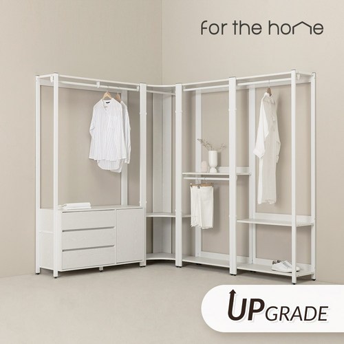 포더홈 이든 철제 드레스룸 옷장 행거, 화이트오크