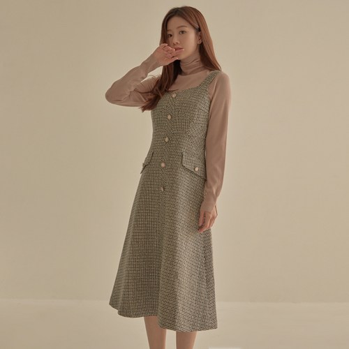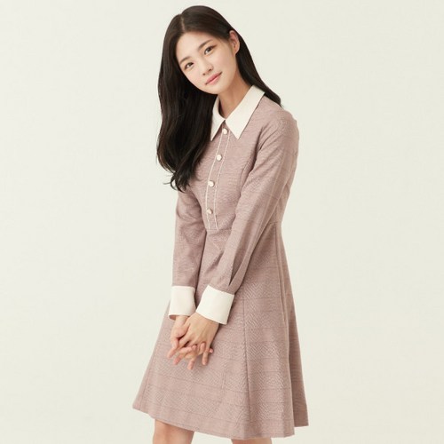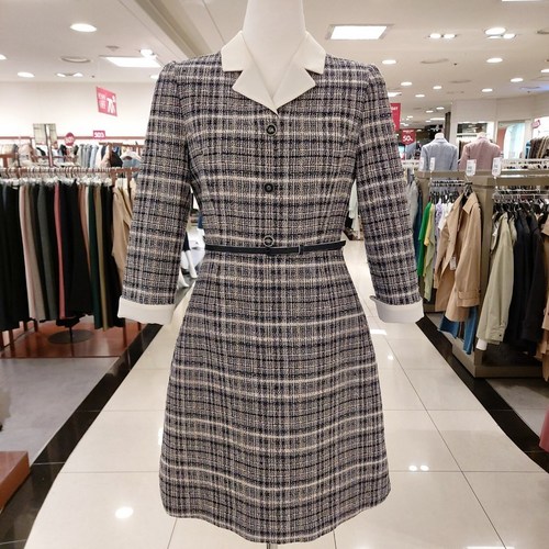 로엠 카라형 단정 체크 원피스 RMOWA2310B
