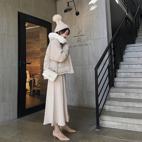 아모르데이 여성용 밴딩 골지 H라인 트임 글루어 스커트