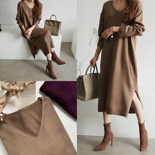 하늘바라기 여성용 뮤엘 브이 니트 원피스