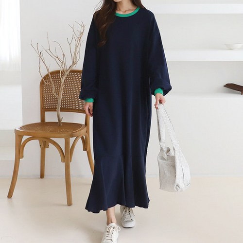 티탁 빅사이즈 루즈핏 어텀 벌룬 롱 원피스