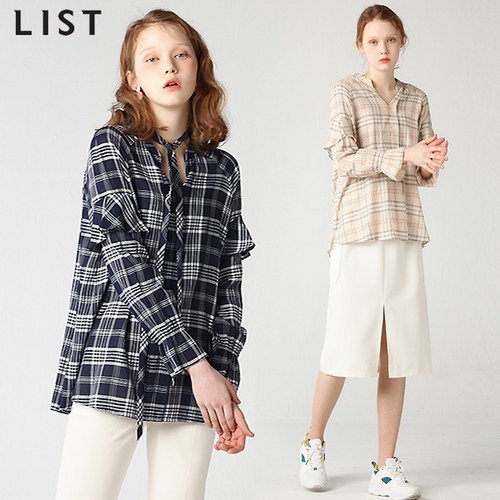 플로렌스 체크 러플 리본타이 블라우스