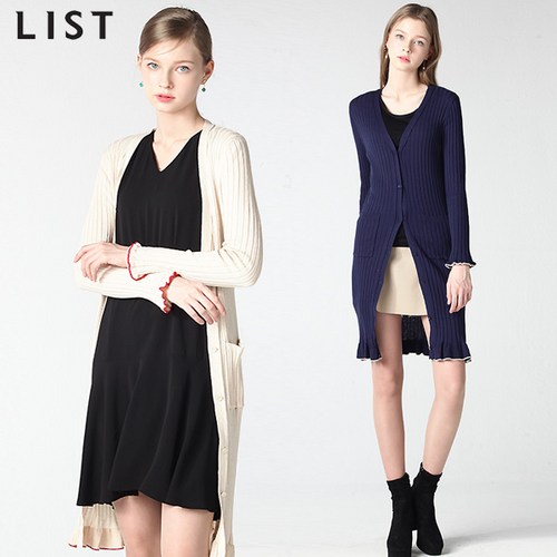 리스트 켈리 칼라배색 골지 롱 가디건