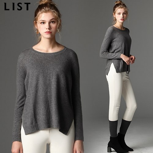 리스트 리스트(LIST) 하이엔드 루즈핏 라운드넥 슬릿 니트 (택가격:98000원)