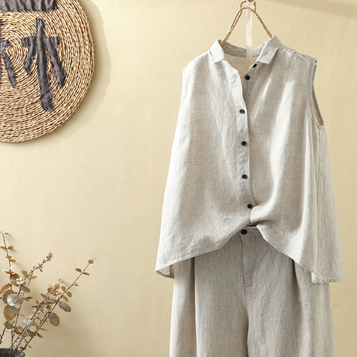 Daitzy 여름 남방 민소매 대마 셔츠 린넨 블라우스 3Color DIZ E2001