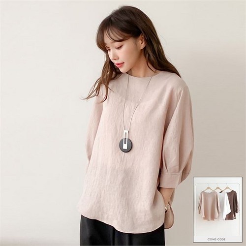 콩코드데일리 BL255 라운드 절개 트임 린넨 여름 퍼프 블라우스