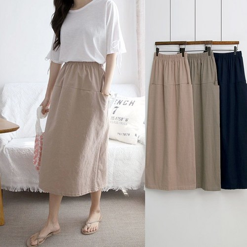 타미나 여름 린넨 밴딩 H라인 롱 스커트