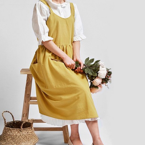 리스테이 내츄럴 린넨앞치마 4colors(꽃 요리 미술 카페 공방 매장), 머스터드, 1개