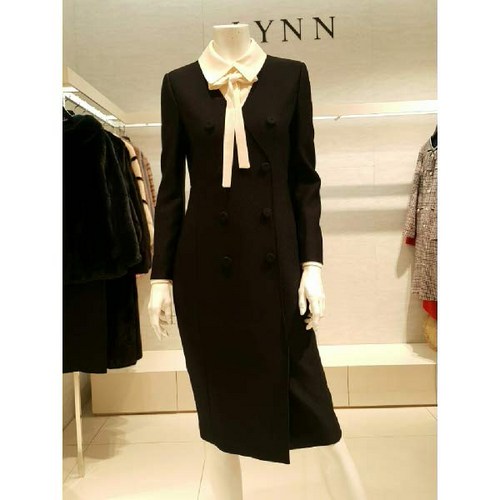 [현대백화점][린 LYNN] 리본탈착카라더블단추원피스 (LGOPJK9900BK)