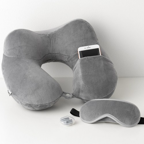 인트래블 낙타에어목베개 + 안대 + 귀마개 세트, 그레이