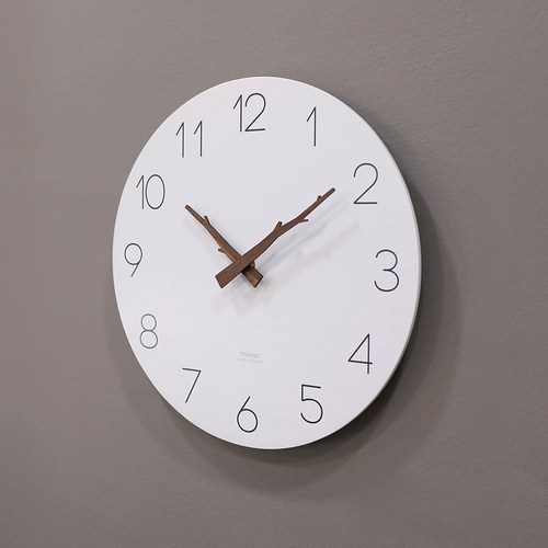 무아스 무소음 플랫우드 나뭇가지 벽시계, 화이트