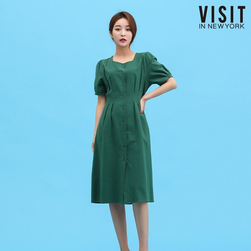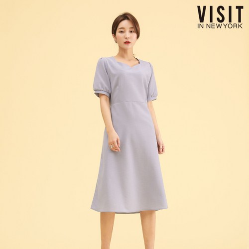 VISIT IN NEWYORK 브이넥 퍼프 스트랩 원피스(VW4OPE4)