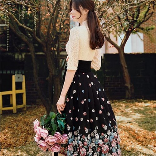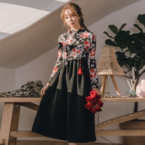 차파오 스타일 퓨전 생활한복 미시 맘룩 롱 원피스 dec4.01