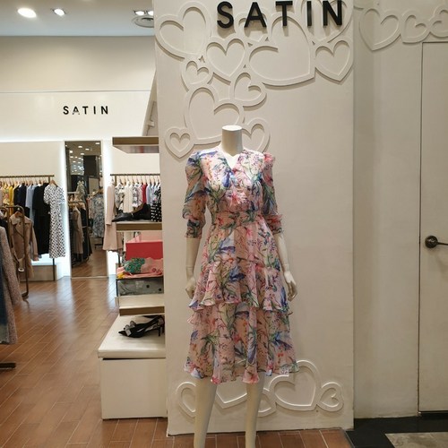 샤틴 나뭇잎패턴 원피스 S202M678-03