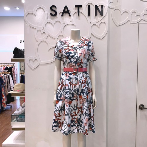샤틴 나뭇잎패턴 원피스 S202M678-03