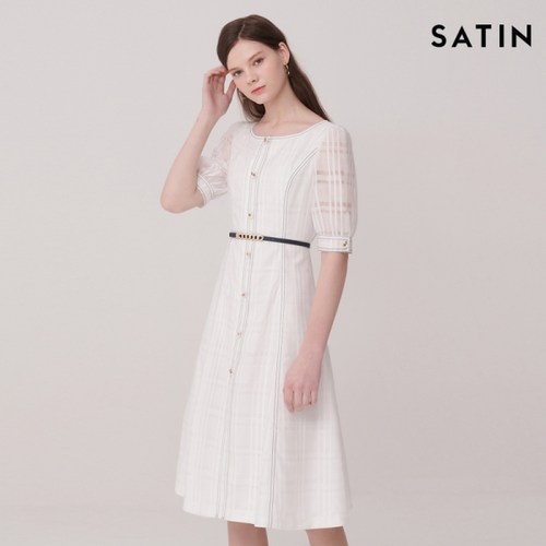 샤틴 시스루 벨티드 원피스 S202M627-03