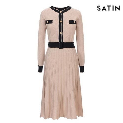 샤틴 펄 니트 벨티드 원피스 O203T983-20