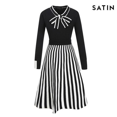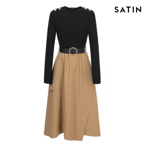샤틴 소매 배색 디자인 원피스 O203T916-20