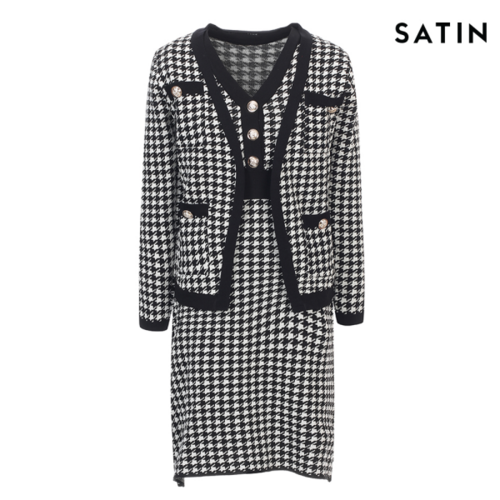 샤틴 하운드 체크 니트 원피스 세트 O203T979-11