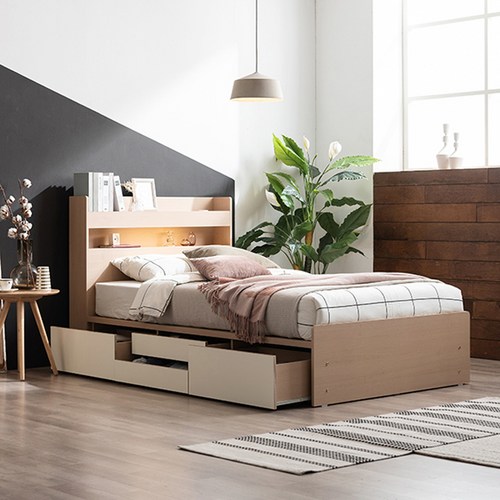 삼익가구 브린디 LED 빅서랍 4단 수납침대 방문설치, 오크