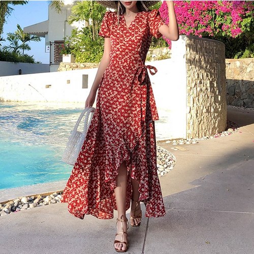 와이에이치 여성 여름 고급스러운 반팔 쉬폰 원피스