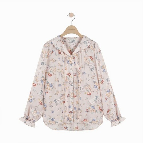 써스데이아일랜드 T192MBL131W_프릴 네크 플라워 패턴 블라우스