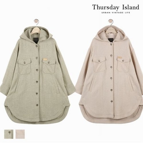 써스데이아일랜드 여성 오버핏 후드 싱글체크 셔츠형 자켓 T186MCT136W