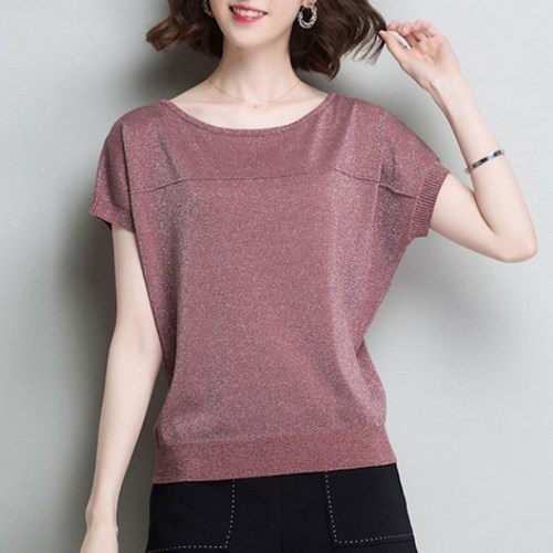 빼빼 여성용 레이온 라운드 니트 티셔츠