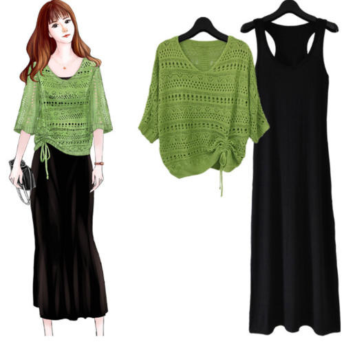 sh스타일) 롱나시원피스+니트시스루 투피스set