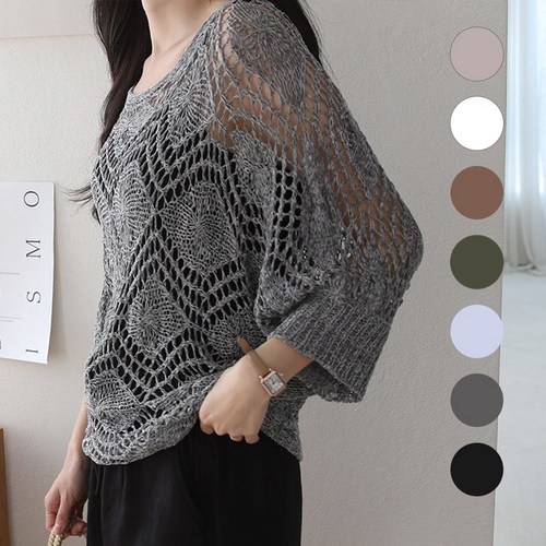 옷픈마켓 여름 니트 칠부 시스루 섹시한 니트티 빅사이즈 라운드 니트티셔츠