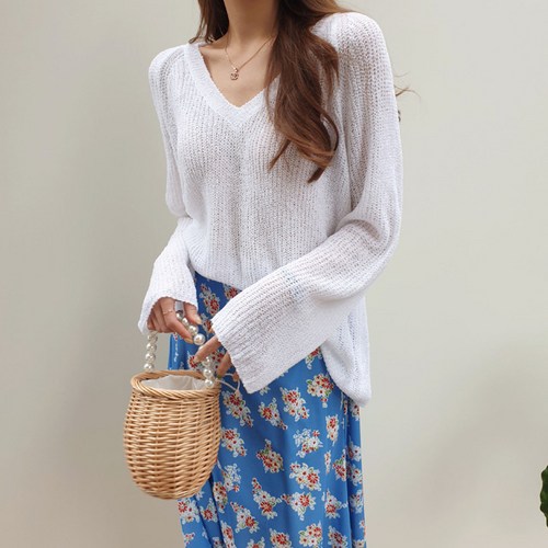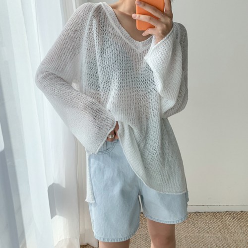 제니트 여성용 브이넥 루즈핏 무빗가오리 시스루니트 N1205