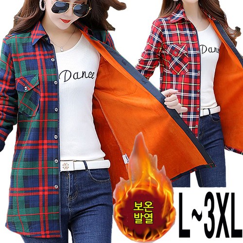 Joyce shop 오래달리기 기모슬림핏 여성 체크남방 셔츠 여성남방 여성기모남방 융 겨울 롱 빅사이즈 블라우스