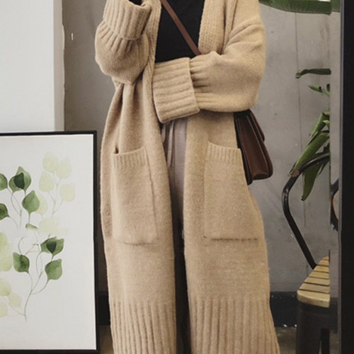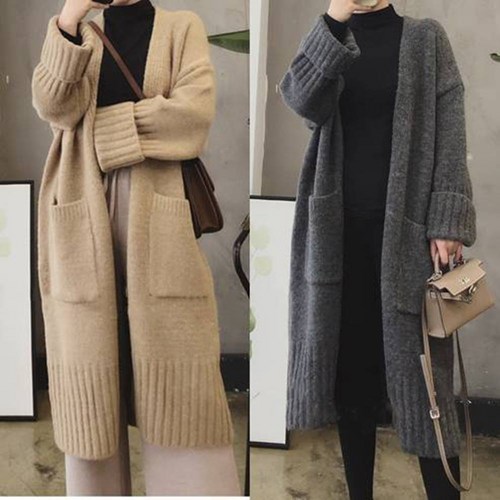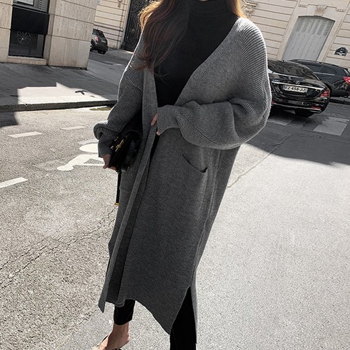 제니트 봄 가을 여성용 루즈핏 롱 니트 숄 가디건 여성가디건 롱가디건