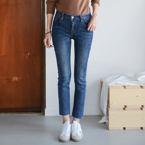 진마니아 여성용 허리스판 진청 워싱 슬림 스판 스키니진 청바지 WJM-712