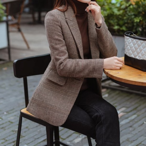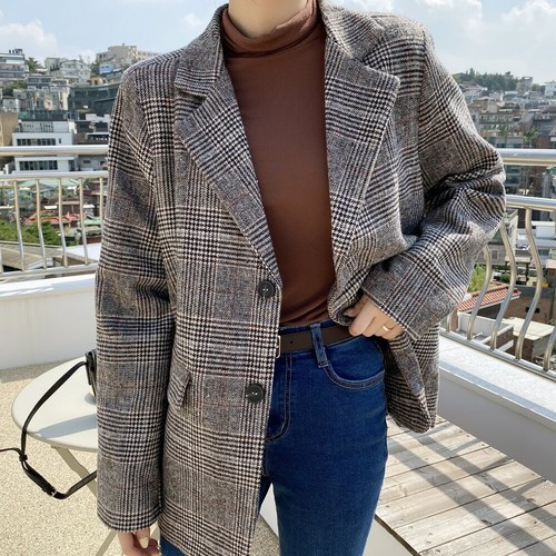 샤이컴퍼니제작 가을 두꺼운 슬림핏 울 체크무늬자켓
